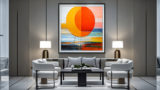 - イエローやオレンジなど明るい色彩の抽象画
